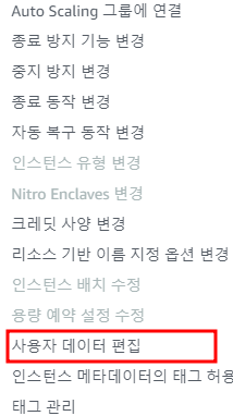 인스턴스 우클릭 > 인스턴스 설정 > 사용자 데이터 편집