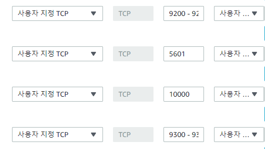 - 인바운드 규칙 추가 (9200,9300-9305,5601)