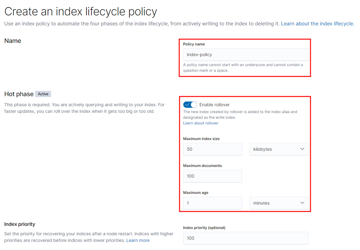 1단계 : Life Cycle Policy Create (인덱스 생명 주기 정책)
