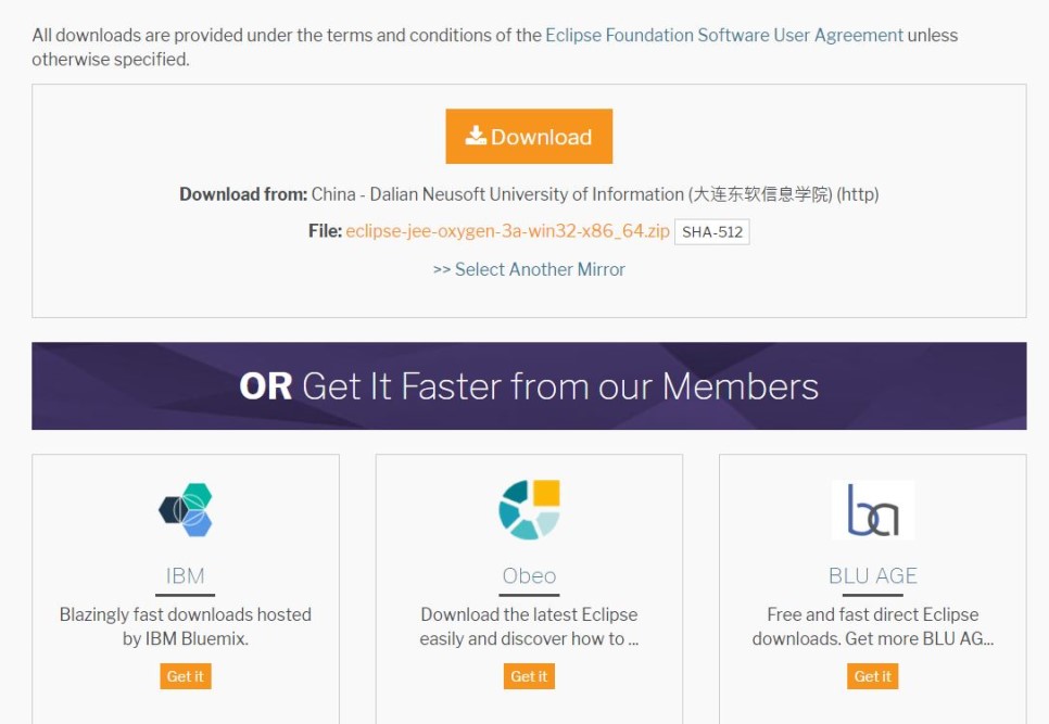 이클립스 홈페이지 들어가서 64bit 용 프로그램을 다운을 받습니다.