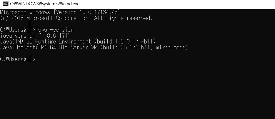 콘솔 창이 떴다면 java -version 을 입력하여 위의 사진처럼 나왔다면 설치가 잘 된 것입니다.