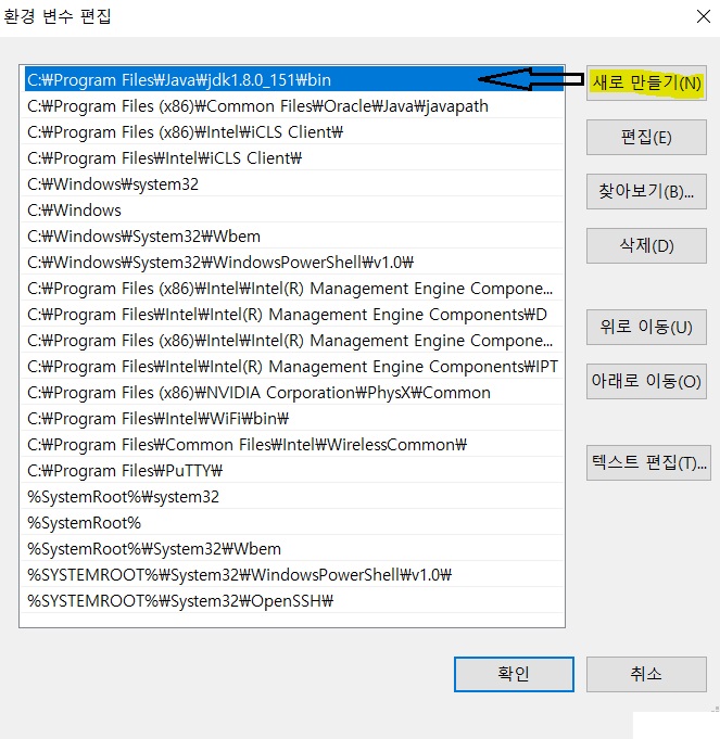 그리고 이와 같이 입력 후 다시 새로 만들기를 눌러서