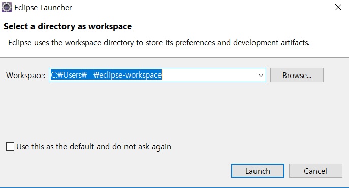 이클립스를 이용하면서 코딩과 컴파일한 내용들이 어디에 저장할 것인지 경로를 나타낸 것입니다.