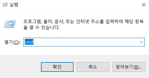 Win + R 을 누르시고 cmd를 입력해주세요.