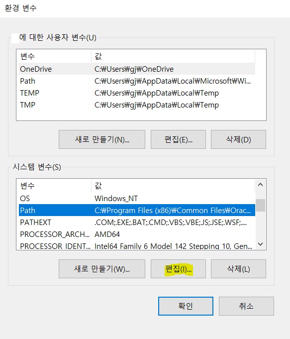 먼저 설정해줘야 하는 것은 시스템 변수에서 편집을 눌러주세요.