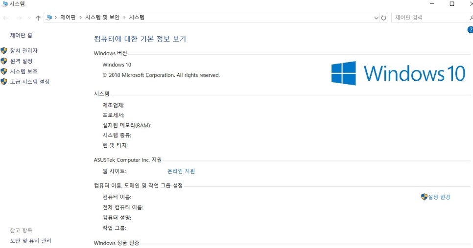 여기서 왼쪽에 있는 고급 시스템 설정을 눌러주세요.