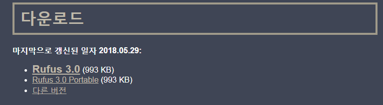 1) http://rufus.akeo.ie/ 들어가서 다운로드!