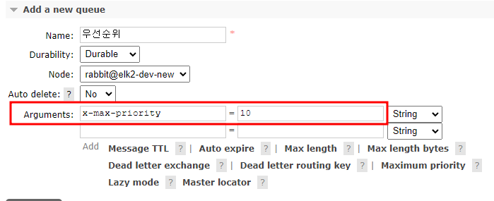 메시지 입력할 때 priority 옵션을 주면 우선순위를 가지게 됩니다.