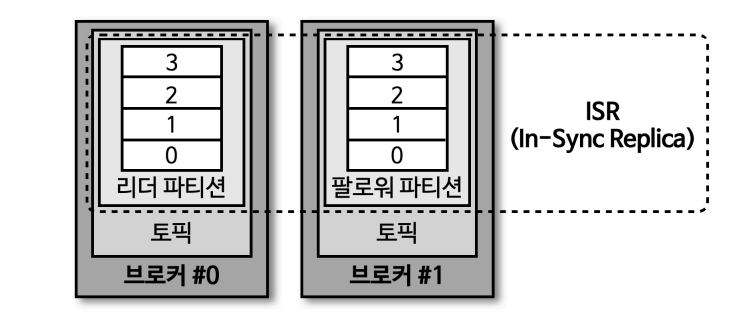 ISR은 리더 파티션과 팔로워 파티션이 모든 싱크가 된 상태를 뜻한다.
