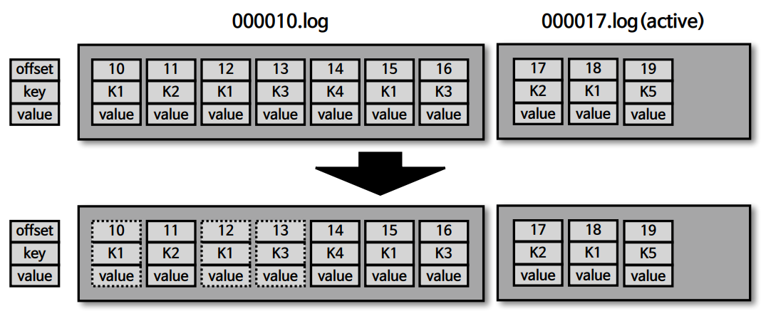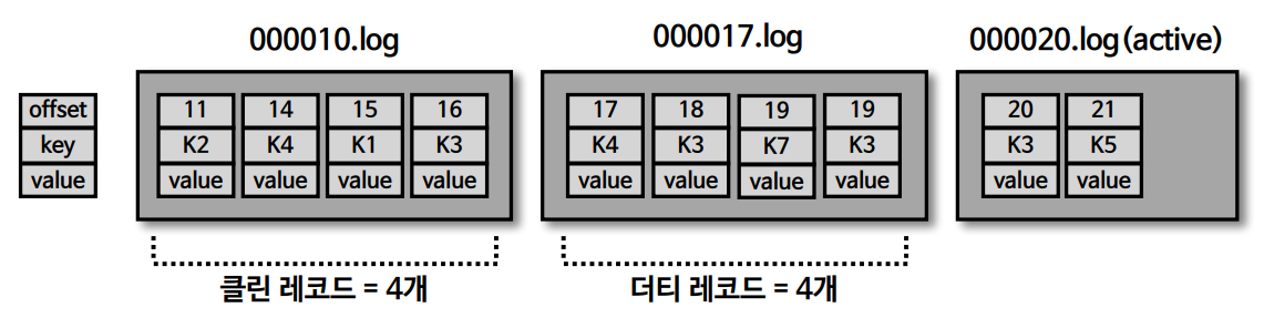 삭제 정책과 다르게 일부 레코드만 삭제될 수 있다. 압축은 액티브 세그먼트를 제외한 데이터가 대상이다.