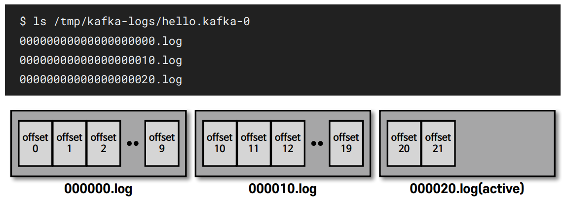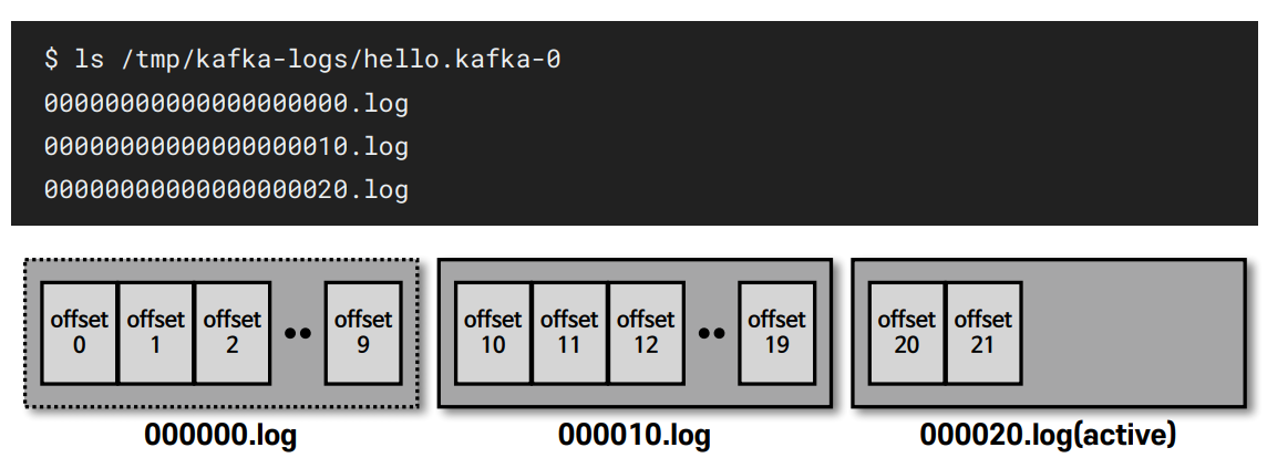 데이터 삭제는 파일 단위로 이루어지는데 이 단위를 로그 세그먼트라고 부른다.