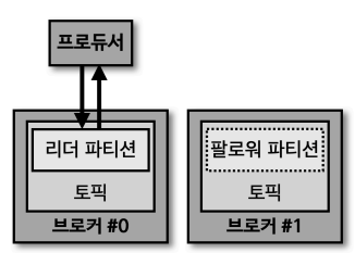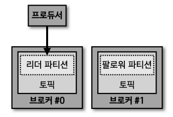 프로듀서가 리더 파티션으로 데이터를 전송했을 때 리더 파티션으로 데이터가 저장되었는지 확인하지 않는다는 뜻이다.