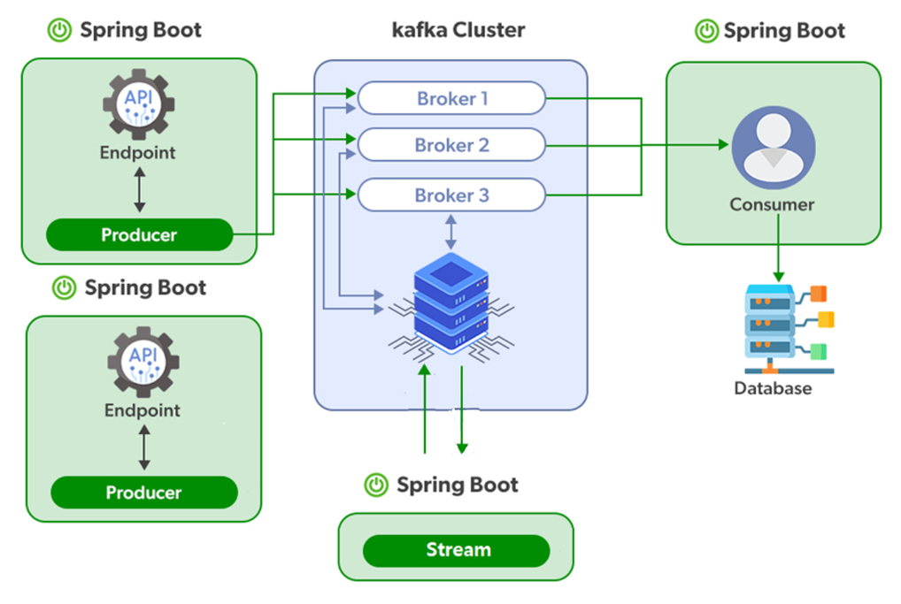 위 처리방식의 문제점을 해결하기 위해 카프카를 도입하고 아래와 같이 Pub, Sub, Stream 3개의 프로젝트를 구성하려 합니다.