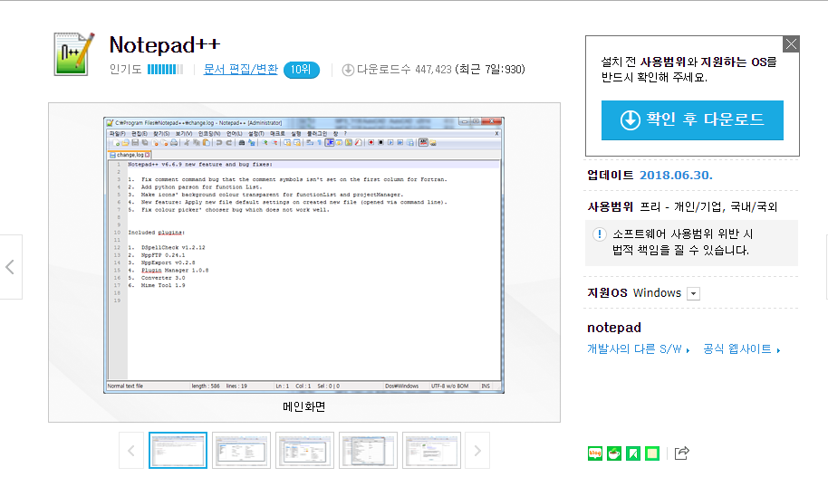 안녕하세요. 제가 자주 사용하는 Edit 프로그램 Notepad++를 다운받으려고 합니다.