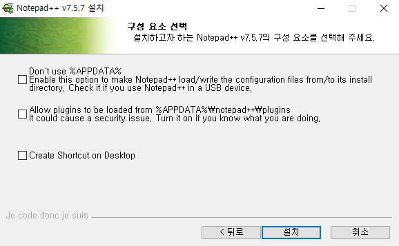 Create Shortcut on Desktop -> 바탕화면 바로가기 아이콘 생성 클릭 -> 설치