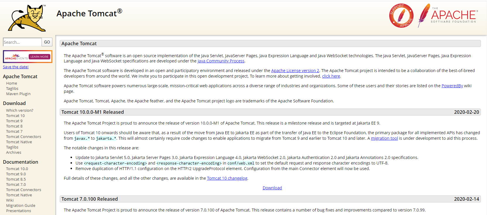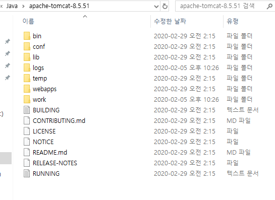 왼쪽에 Download > Tomcat 버전