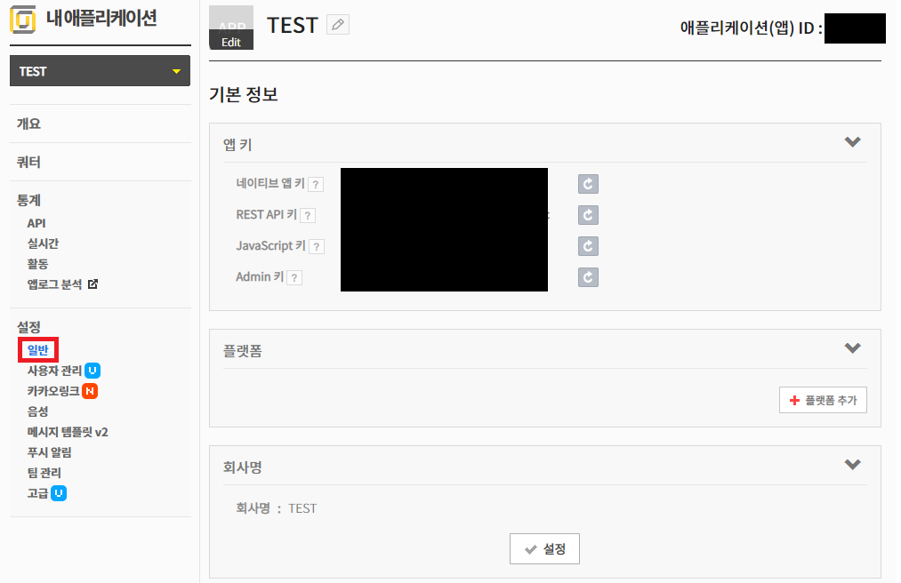 앱 만들기 성공 > 일반 클릭