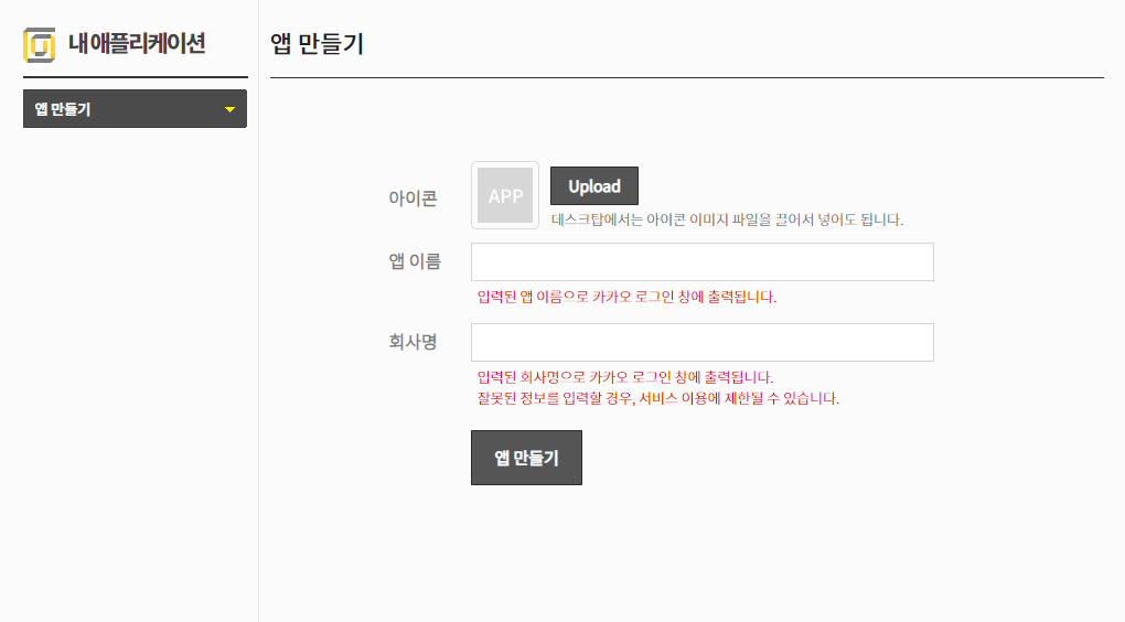 내 애플리케이션 > 앱 만들기