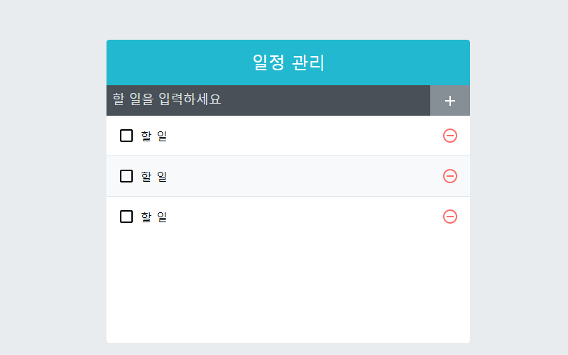 - 화면을 가운데에 정렬시켜 주며, 앱 타이틀(일정 관리)를 보여 줍니다.