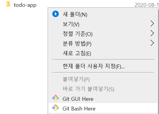 - 레파지토리에 올리고 싶은 곳에서 git bash 실행