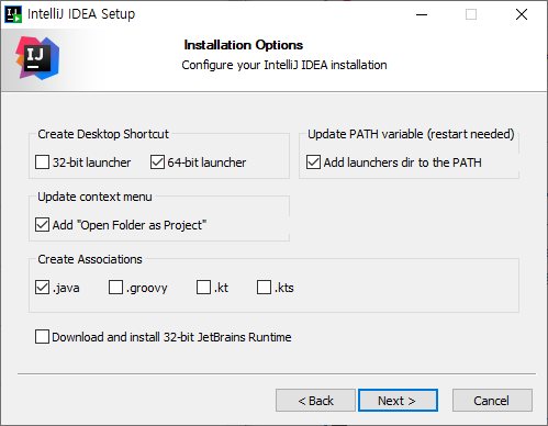- Update PATH variable : 윈도우 환경변수에 자동으로 추가